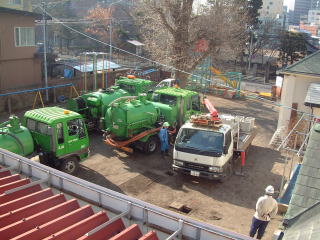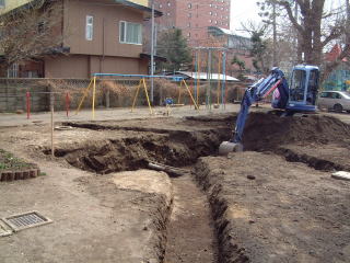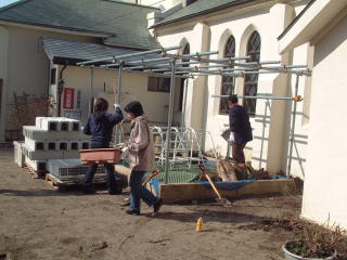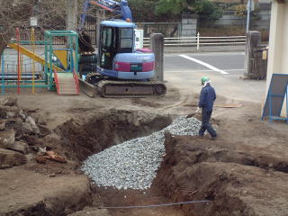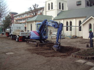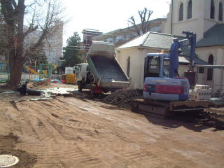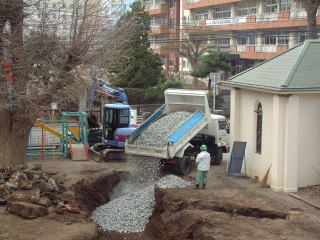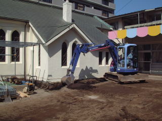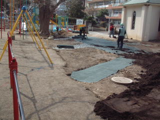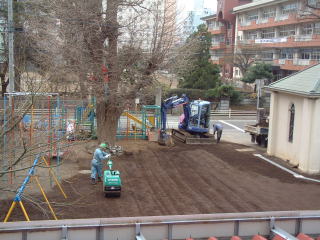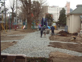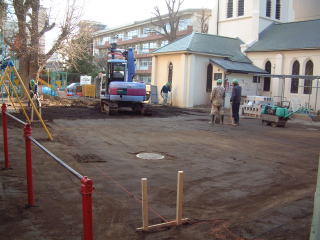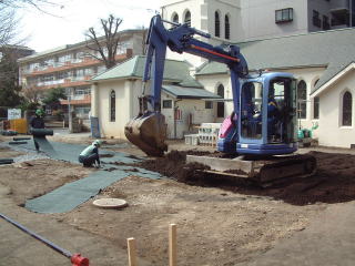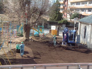 2008年3月17日から2週間、幼稚園の春休みに庭の改修工事が行なわれました。