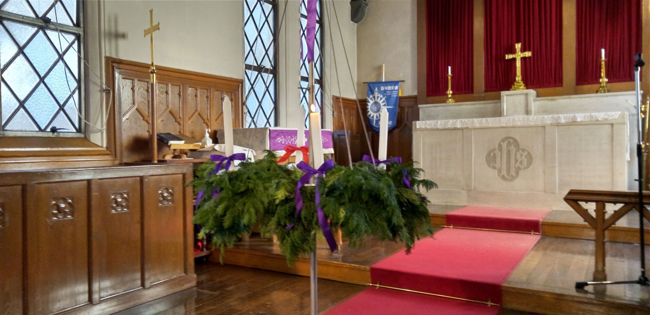 ![]() 「アドベントリース」の1本目のろうそくに灯がともりました (2023.12.03 降臨節第1主日) |